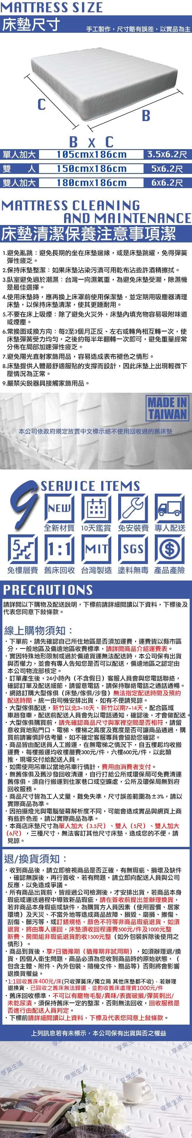 床墊分很多種,我最愛【享樂生活】日式麵包床墊(雙人5X6.2尺),由於過去買到不好的床墊經驗,現在我都會上ptt和mobile01好好比較評比一番,務必要確認是品質和CP值都高的才會入手,時逢冬春轉換之際,【享樂生活】日式麵包床墊(雙人5X6.2尺)就是今年送給自己最好了禮物,畢竟人的一生有3分之一都在床上,所以強烈推薦【享樂生活】日式麵包床墊(雙人5X6.2尺),喜歡的朋友別買錯囉,正確網址請點此:【享樂生活】日式麵包床墊(雙人5X6.2尺)以CP值來說,算是物超所值了,趁便宜收一個在身邊用吧~